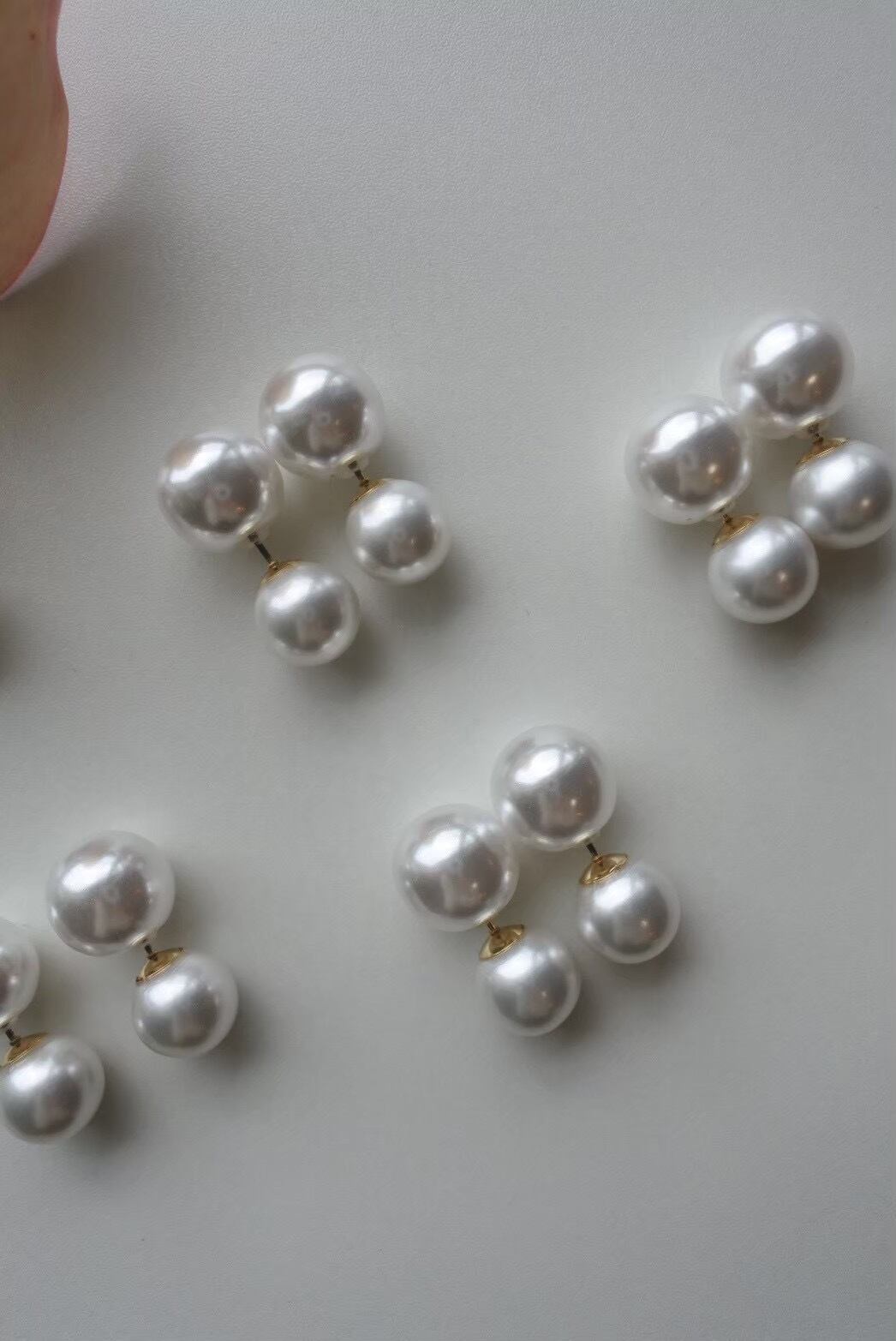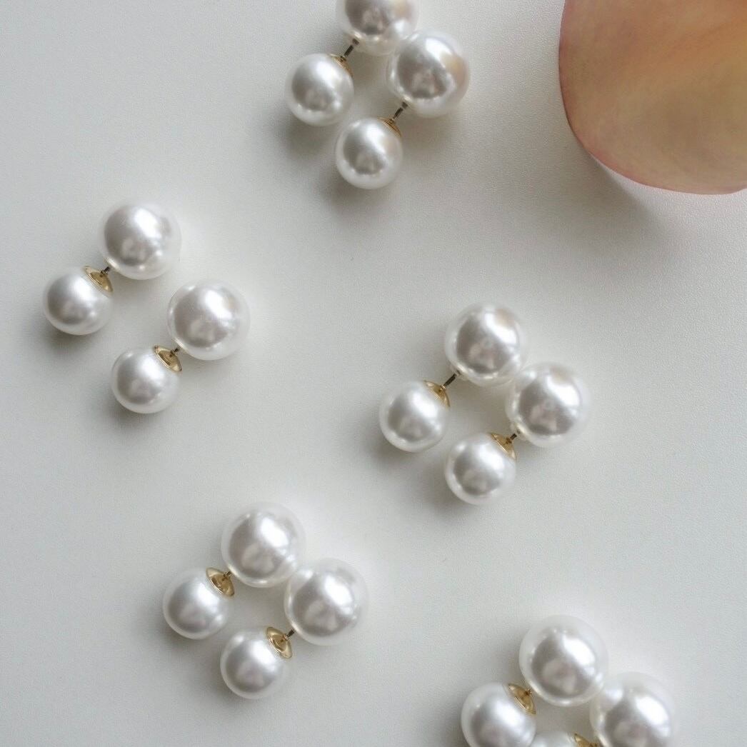 耳たぶの前後からパールが覗くデザインで、シンプルながらもさりげない個性を引き立てます。ゴールドの金具が上品なアクセントとなり、洗練された雰囲気に仕上げています。