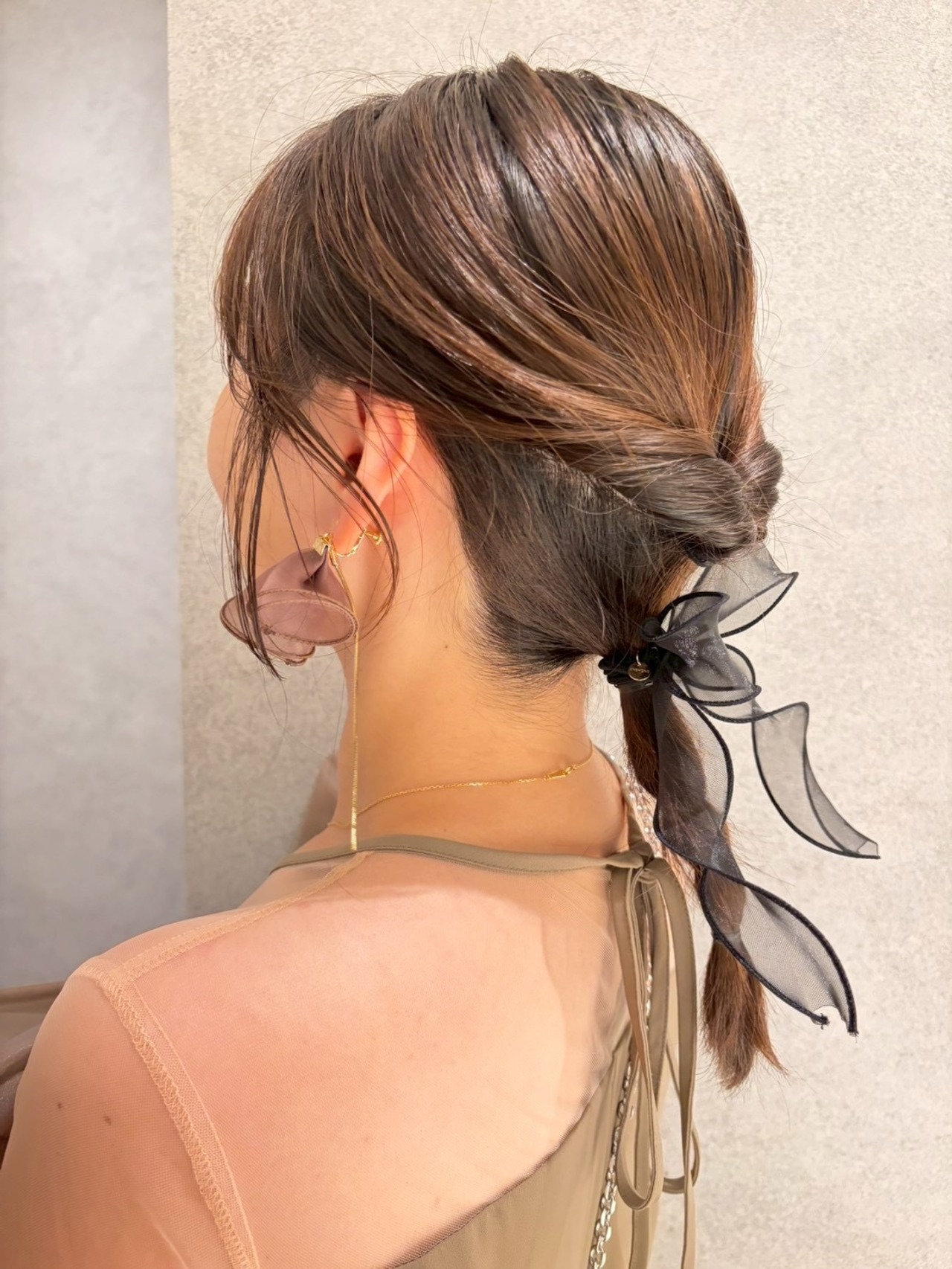 柔らかい透け感のあるブラウンが甘さを抑えて大人っぽさをプラスしてくれます。